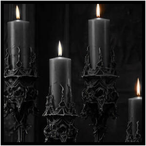 A seemingly ordinary taper candle, it's wax of ebony and intricate glowing imprints. Oddly, its immune to typical lighting. Its glow only triggered by a flick of a wrist. Upon activation, any flame summoned will depart from the wick and hover around the user, multiple casts providing multiple sources of light. The duration of each lasts a little less then an hour.Occasionally, one may witness eyes staring back at them from the ghostly apparitions.
