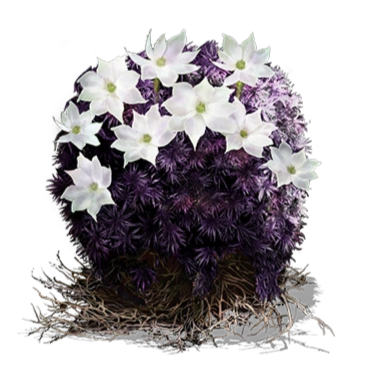 A flower populated with a globe of purple lightweight seeds (similar to a dandelion). Blowing it into a target unleashes a cloud of sparkling smog, effectively blinding them for the duration spent within it.