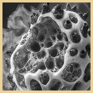 A dense, wiry white composition of an orb littered with tiny holes. Focusing a small sliver of aether summons thousands of tiny spider apparitions from each opening, showering them in whatever direction the owner wills.